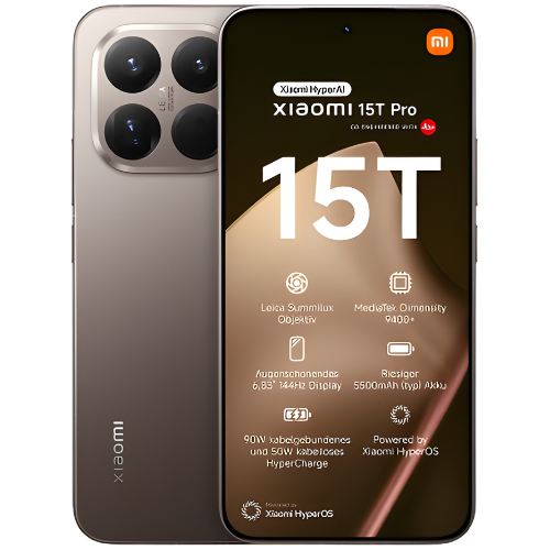 Das Xiaomi 15T Pro kombiniert Premium-Design mit starker Leica-Kamera und 5-fach nativem Zoom. Dazu gibt’s ein 6,83 Zoll AMOLED-Display mit 144 Hz und bis zu 3.200 Nits Helligkeit sowie einen 5.500-mAh-Akku, den du mit 90W Kabel oder 50W kabellos rasant auflädst.